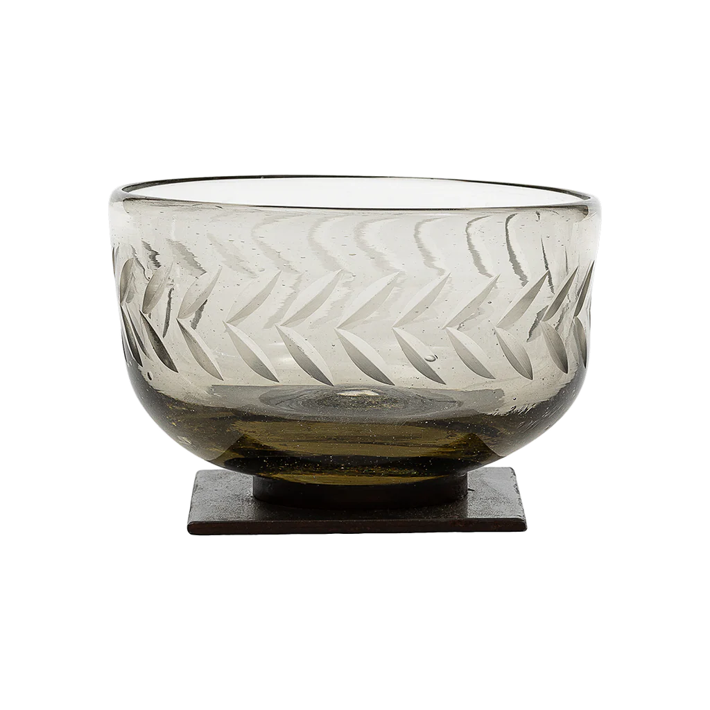 Mini mouth blown engraved bowl w/ iron stand