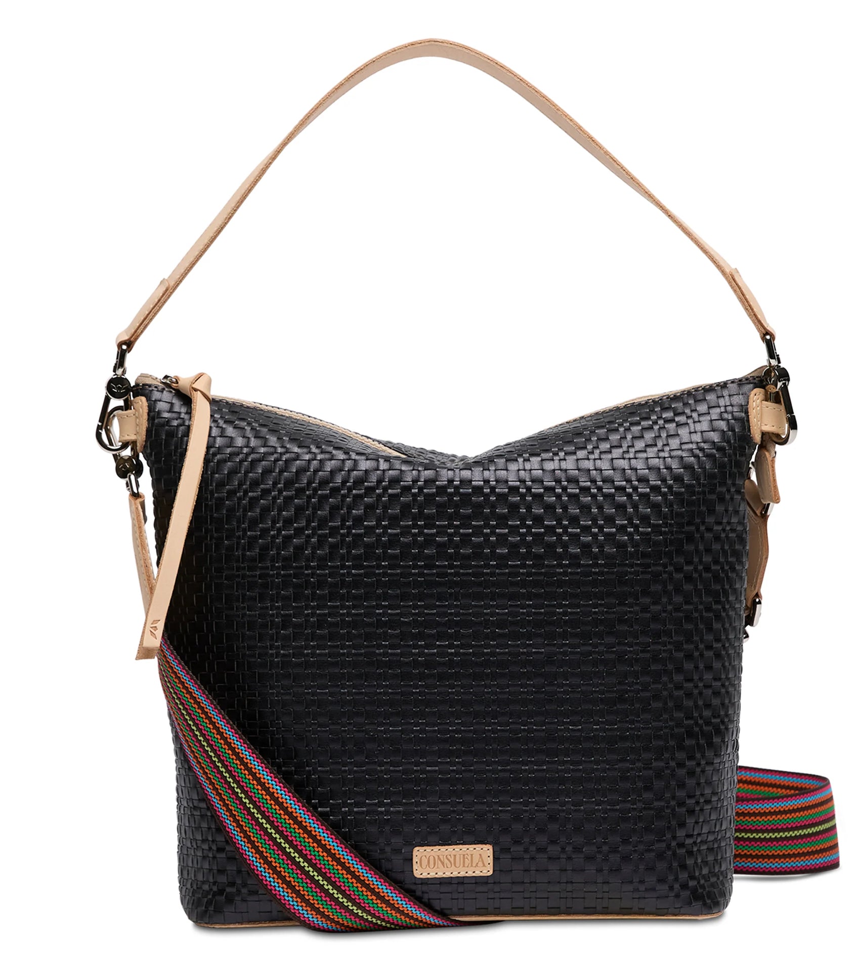 The Hobo is a convertible crossbody or shoulder bag with two included straps. This woven bag comfortably carries the essentials and much more. Perfect for those who like to be prepared for anything and everything!